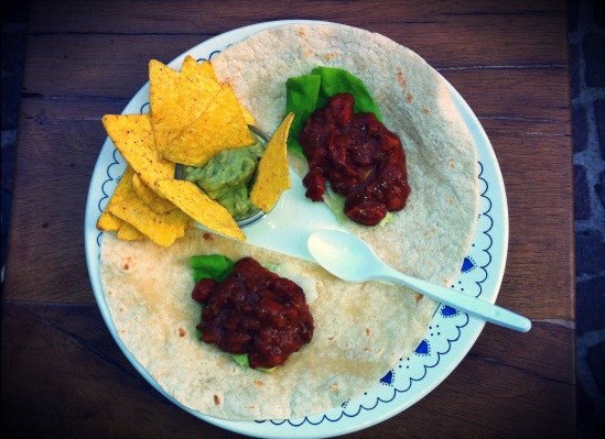 - Per iniziare tacos con formaggio fuso e concassé di pomodori