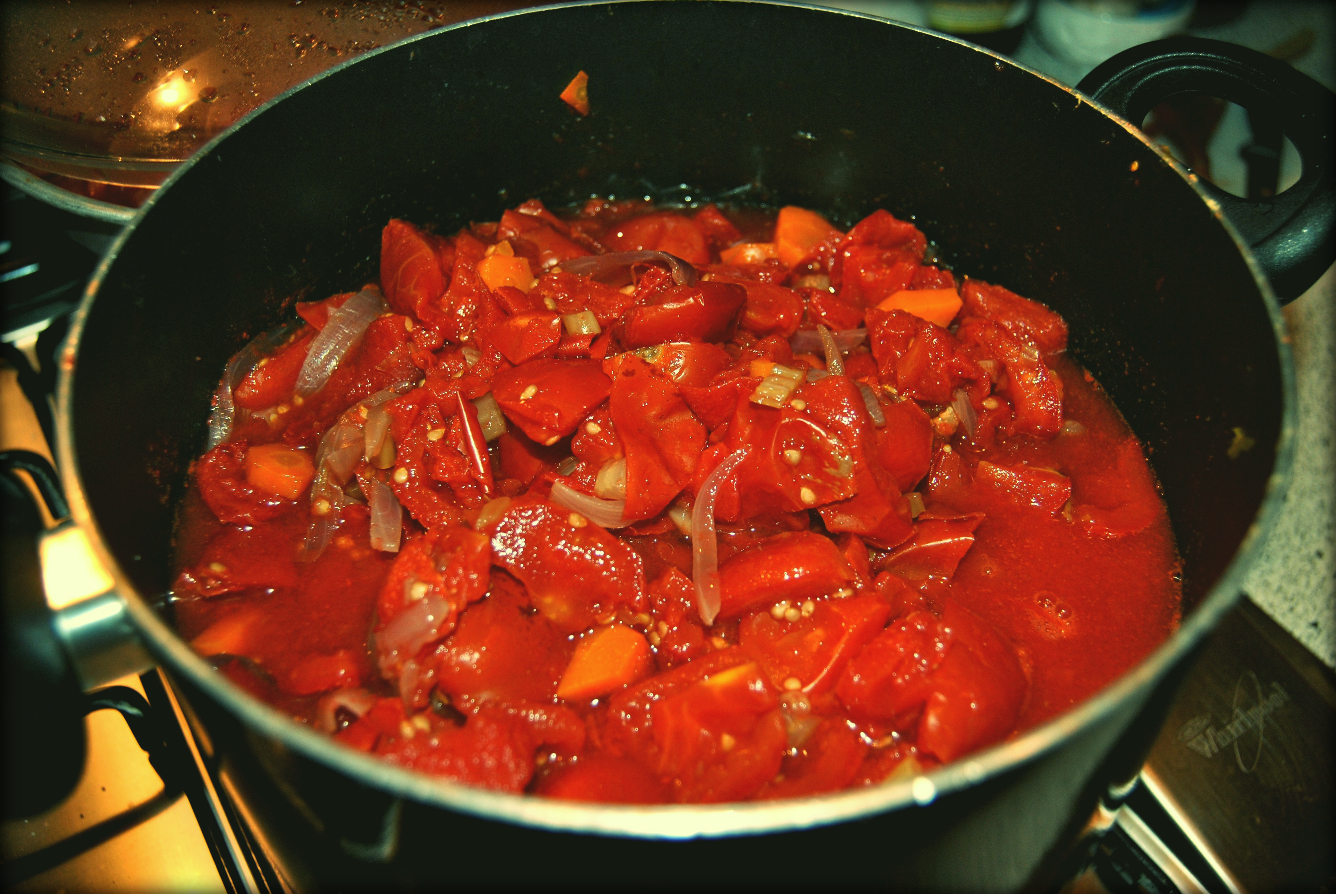 5_Mescolate, aggiustate di sale e lasciate cuocere a fuoco lento, finché i pomodori non saranno completamente cotti. Arrivati a questo passaggio la Sig.ra Paola ci svela il suo segreto: poco prima che i pomodori giungano a cottura, aggiungere un pizzico di zucchero per contrastare l’acidità dei pomodori e rendere la salsa più dolce!