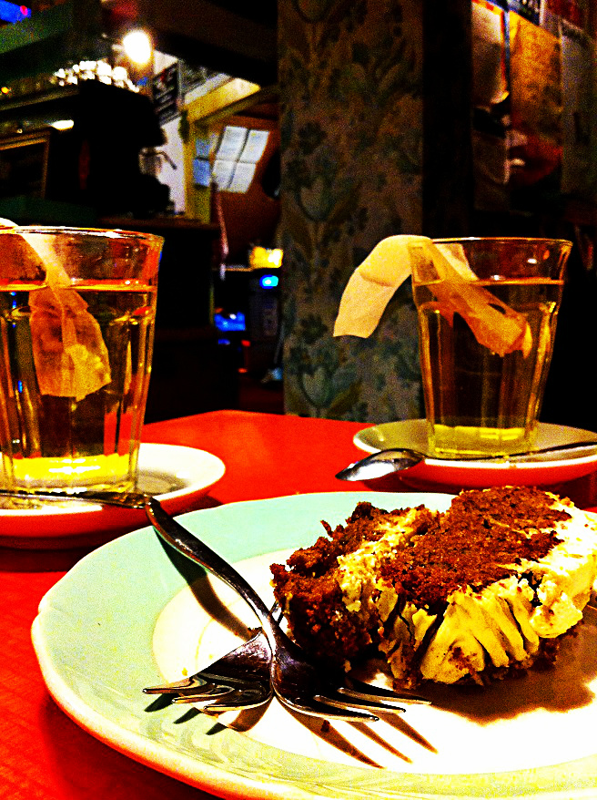 In stile vintage, durante il pomeriggio offre panini, apple pie, koffie verkeerd (caffè con latte) e thè. Alla sera invece potete ordinare piatti etnici, solitamente etiopi o indiani.