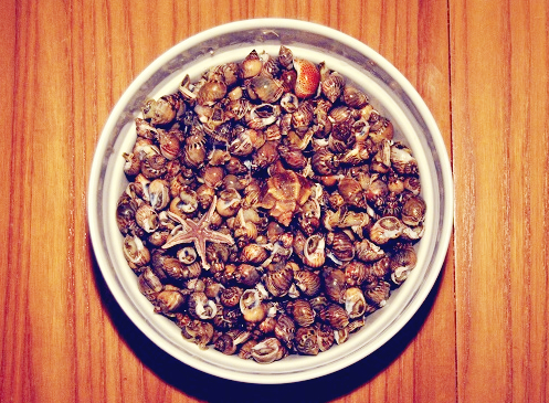 1.Spurgate le lumachine lasciandole a bagno per due ore in acqua e sale e nel frattempo fate bollire una pentola d’acqua senza sale