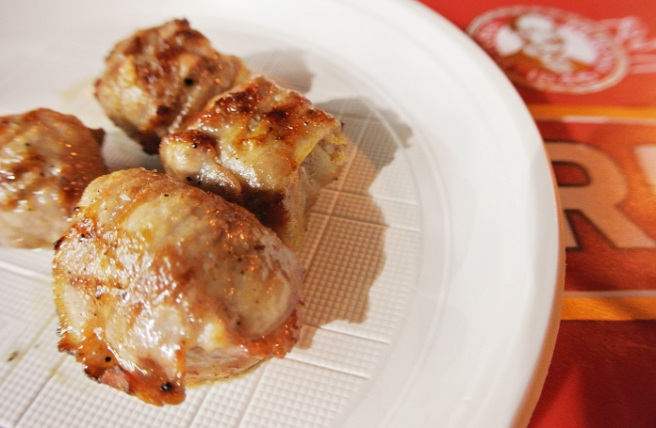 Gaetano ci conquista subito e decidiamo di seguire il suo consiglio, assaggiando la salsiccia al prosecco, le bombette con pancetta di cinghiale e poi una delle specialità, l’animella di agnello, che non avevamo mai assaggiato e che sinceramente non ci ispirava. Ma cucinata e condita con pepe e sale, secondo U’Russ’ style, è una specialità unica.