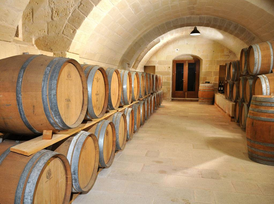 Più di settecento anni di storia, che risale al Medioevo, con 70 ettari di vigneto e circa 260 di oliveti secolari. La barricaia è accolta all’interno di un antico frantoio ipogeo. Da sempre questa cantina ha puntato alla valorizzazione dei vitigni autoctoni come Primitivo, Negroamaro e Malvasia Nera. Dal 2008 produce una linea di vini biologici certificati, usando le antiche cisterne scavate nella roccia viva.