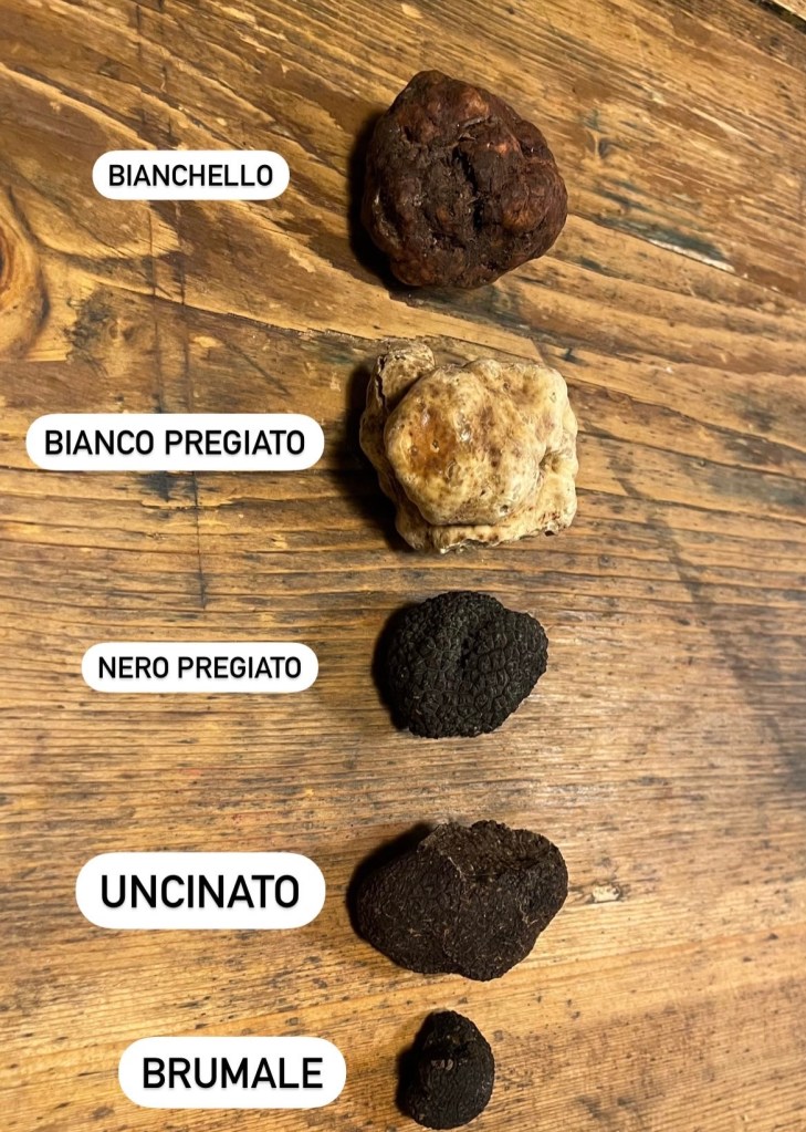 In Italia sono 9 le tipologie di tartufo che possono essere commercializzate e di queste ben 5 le possiamo trovare nei territori tra Acqualagna, Cagli e Sant’Angelo in Vado. Si tratta del pregiatissimo tartufo bianco, il tartufo nero pregiato, il tartufo bianchetto, il tartufo nero estivo e il tartufo moscato o brumale.