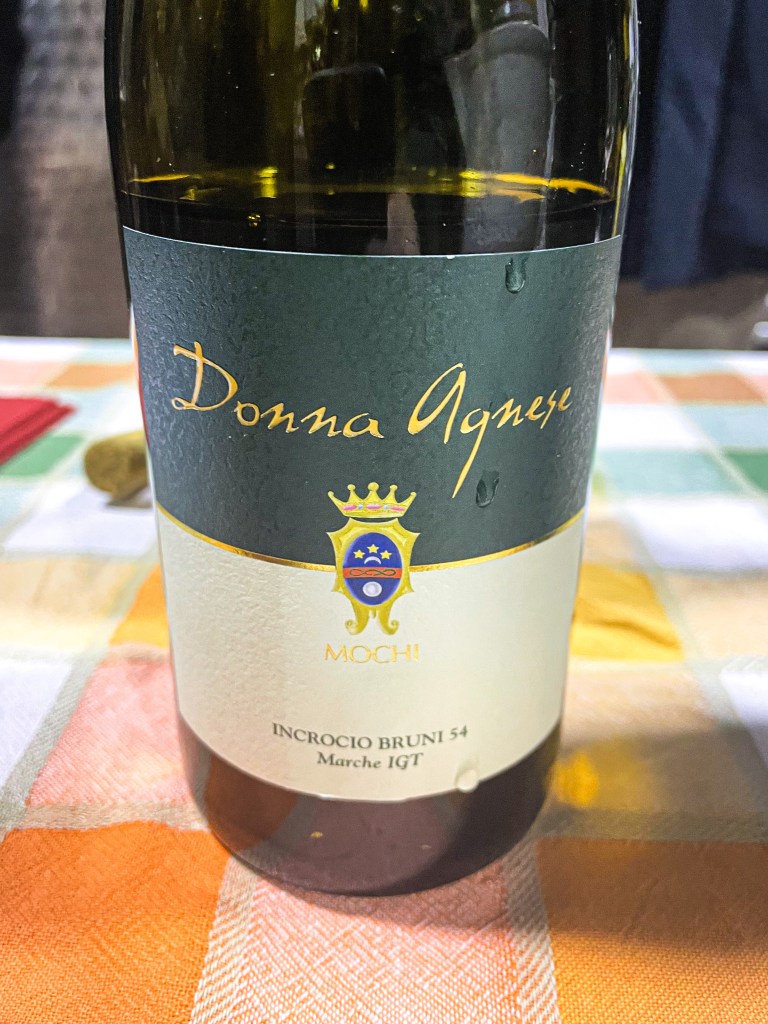 Degno di nota è anche uno dei loro bianchi: il Donna Agnese, ottenuto da uve di Incrocio Bruni 54, un vitigno molto interessante che nasce da un incrocio tra uve Verdicchio e Sauvignon. Profumato, con una bella nota acidula e la giusta intensità.