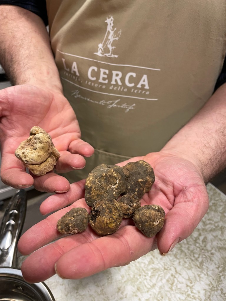 Qui Alessandro e sua moglie, ci hanno preparato piatti a base di tartufo dandoci l’opportunità di gustare le cinque differenti tipologie: il bianchetto, il bianco pregiato, il nero pregiato, l’uncinato e il brumale.